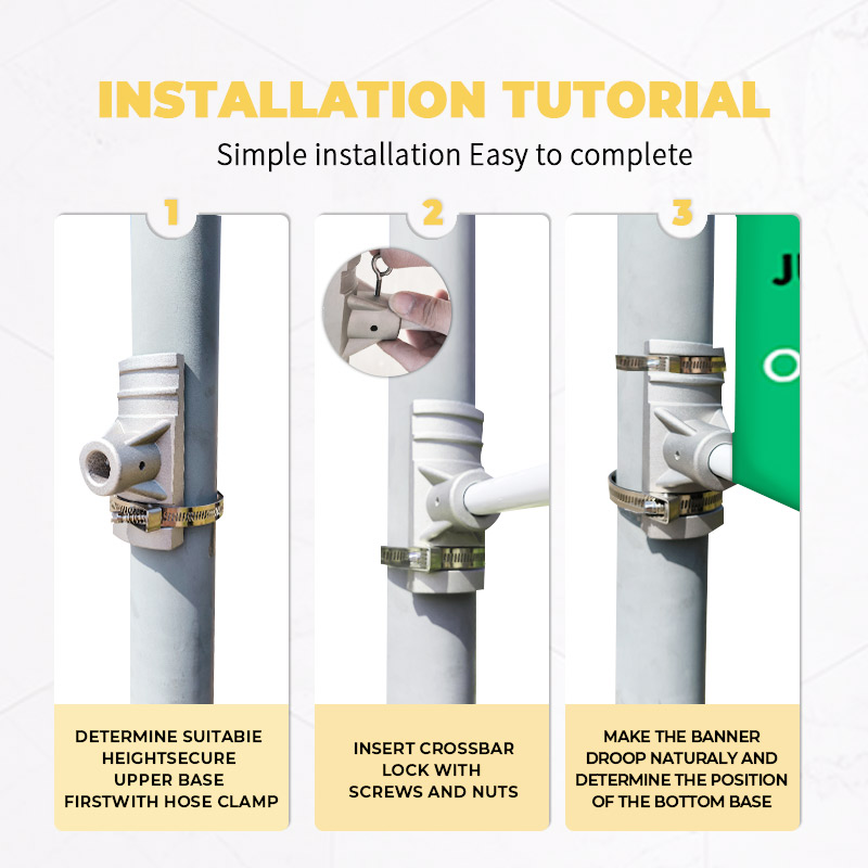 With this bracket, you can adhere your street banner/pole banner/street light banner to any street pole or lamp post whether it is square, round, or multi sided. You can apply the brackets to your own flags or our Street Banners, but please make sure the pole pockets are not smaller than 1.5'', and the recommended width of the flags should be smaller than 24.5''/62cm